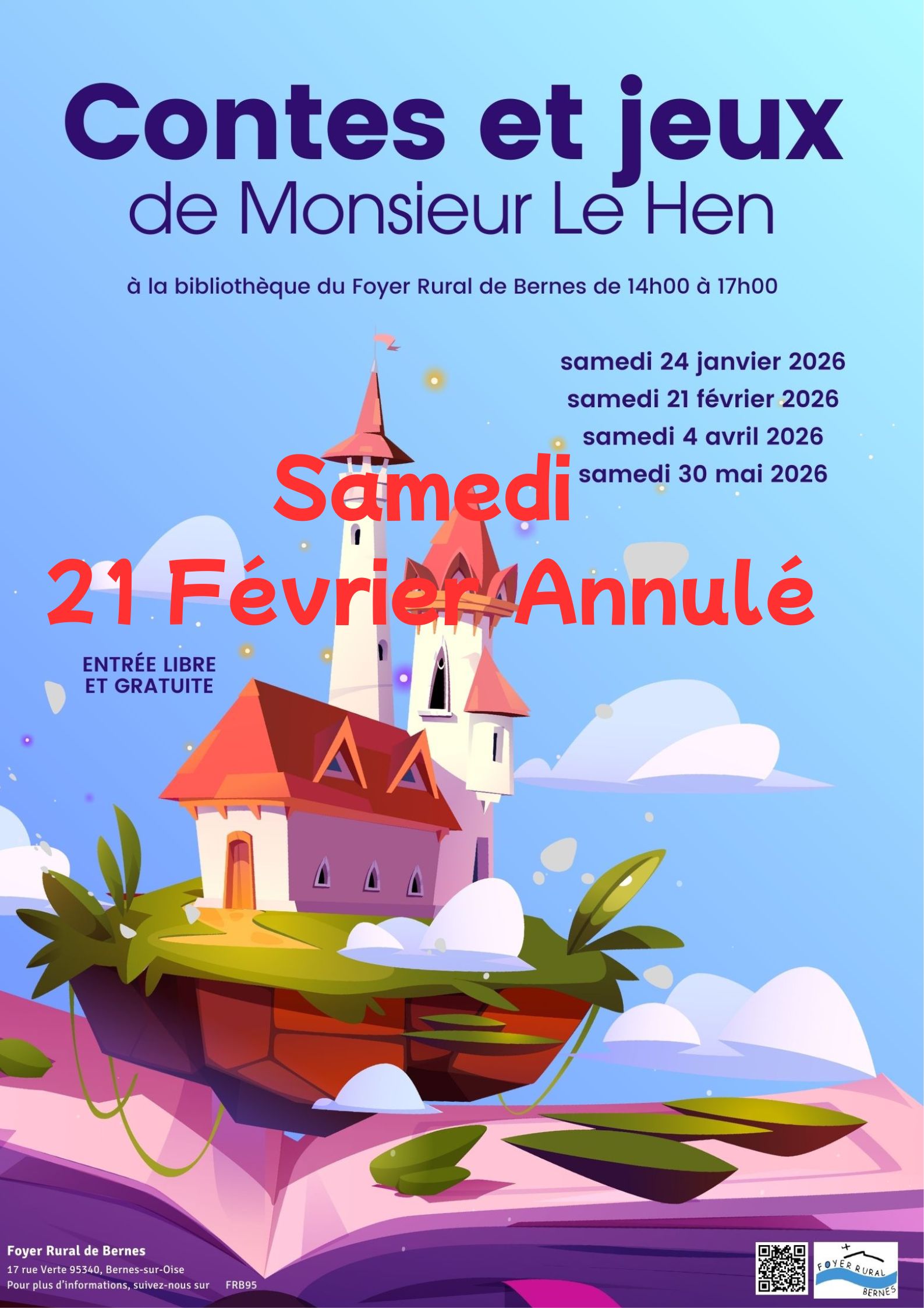 Les contes et jeux du samedi 21 Février sont exceptionnellement annulés !