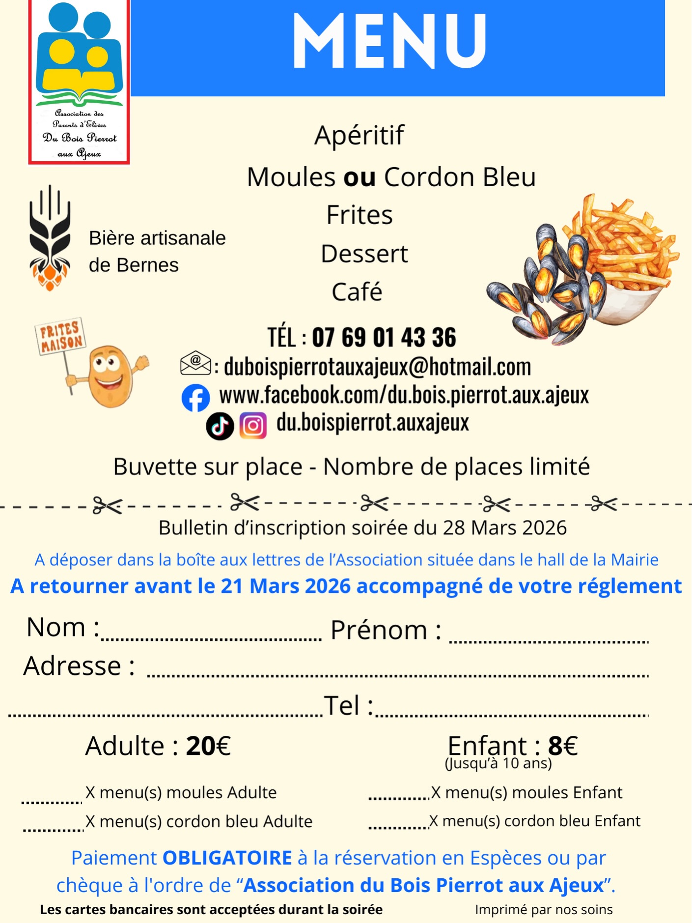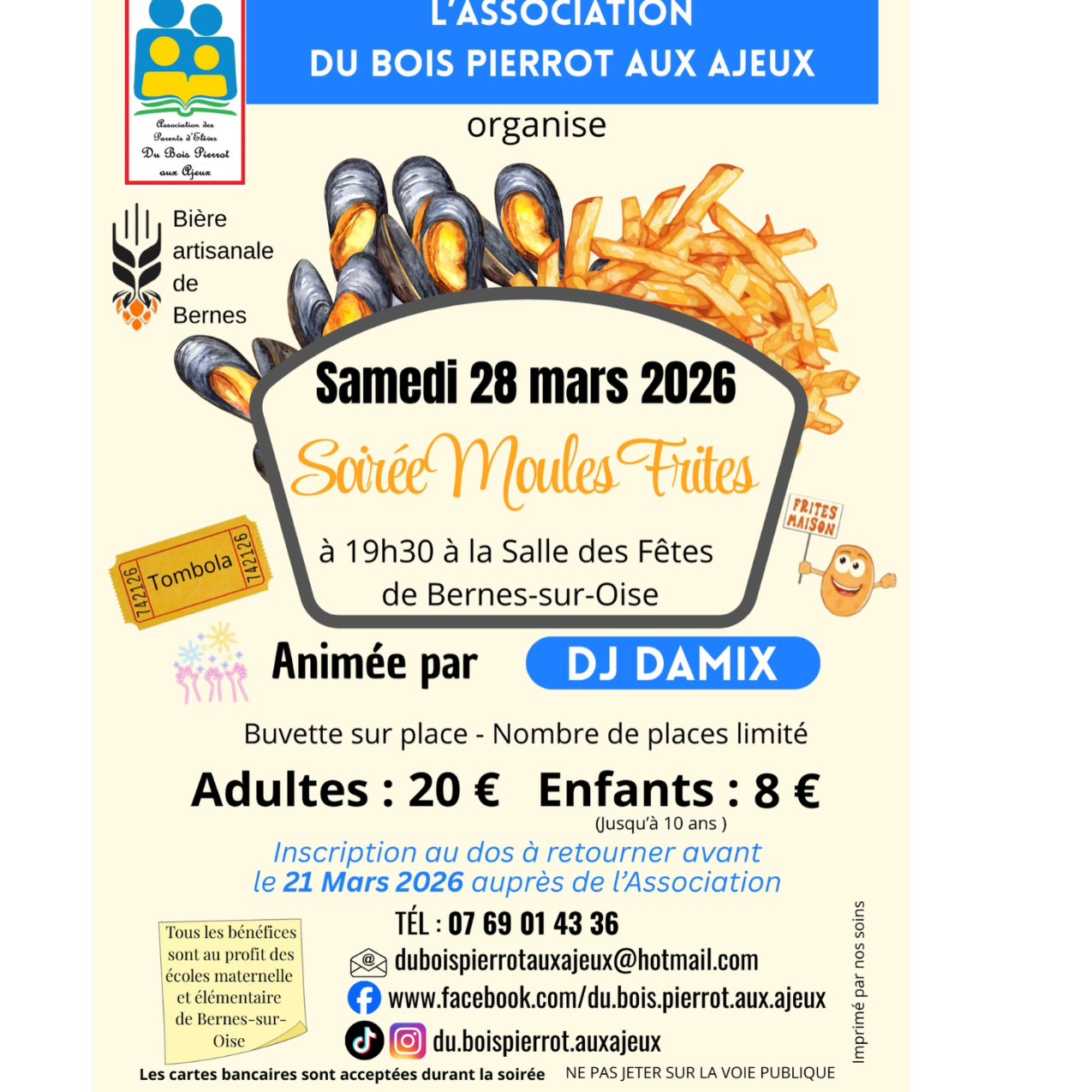 Inscriptions en MP sur le page facebook ou par téléphone au 07 69 01 43 36