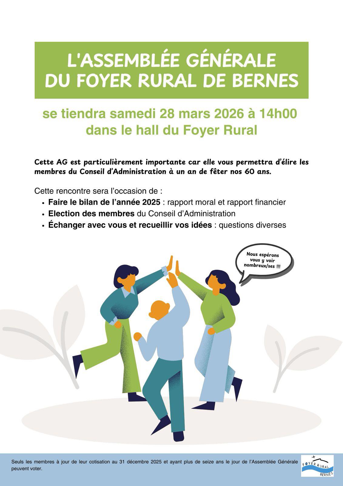 samedi 28 mars à 14h00 dans le hall du Foyer Rural de Bernes