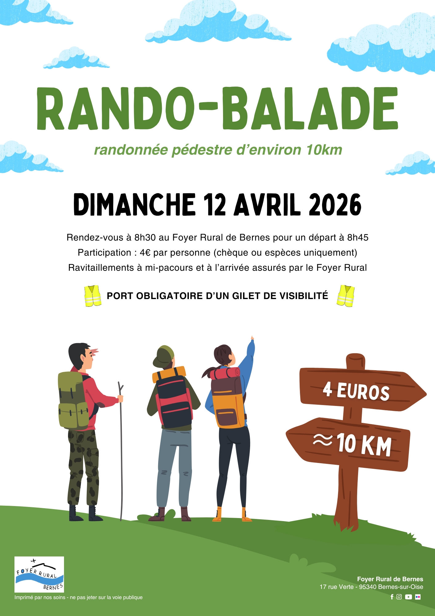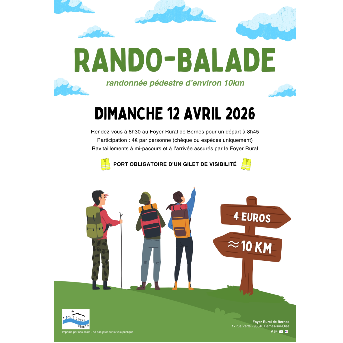 Participation de 4€ par participant, à régler par espèces ou chèque le jour de la randonnée.