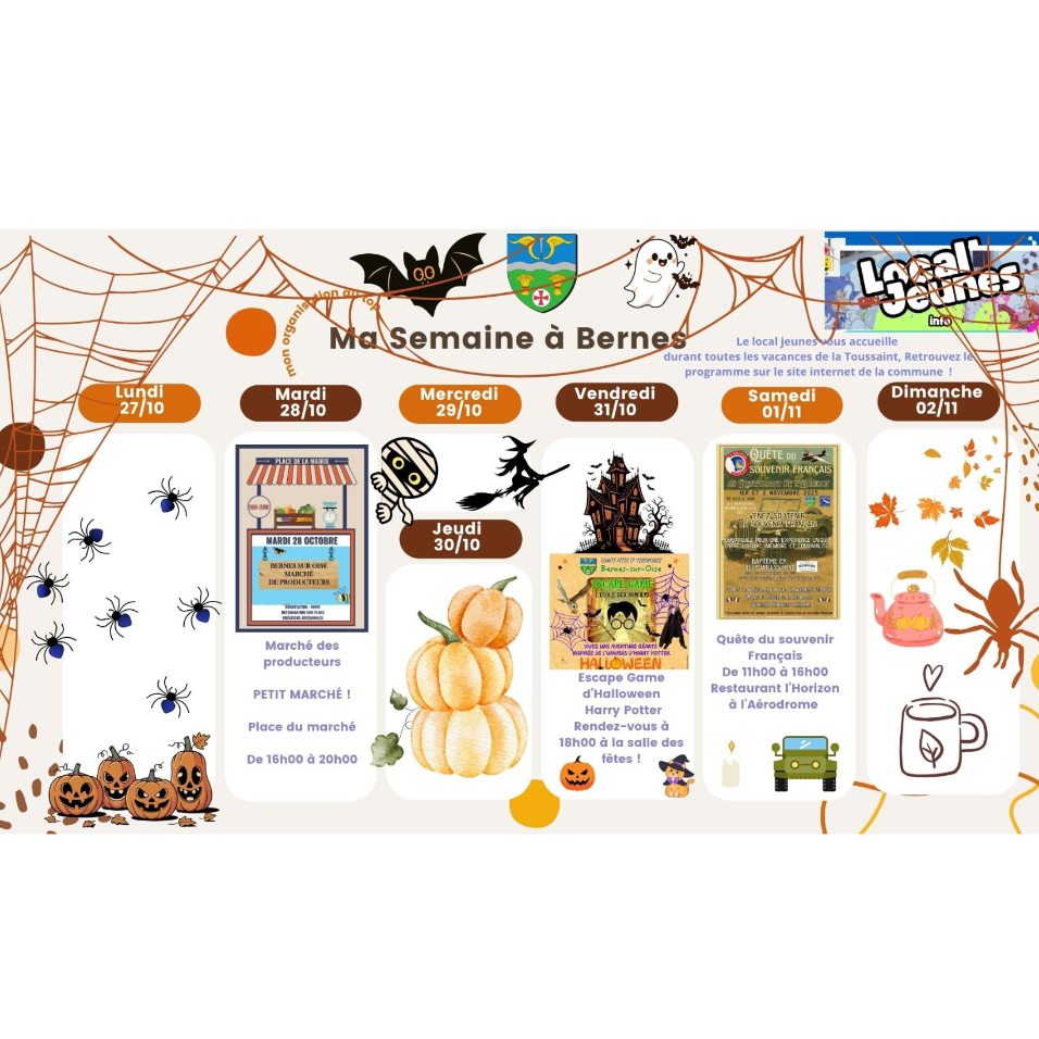 Programme du Local Jeunes des vacances de la Toussaint !