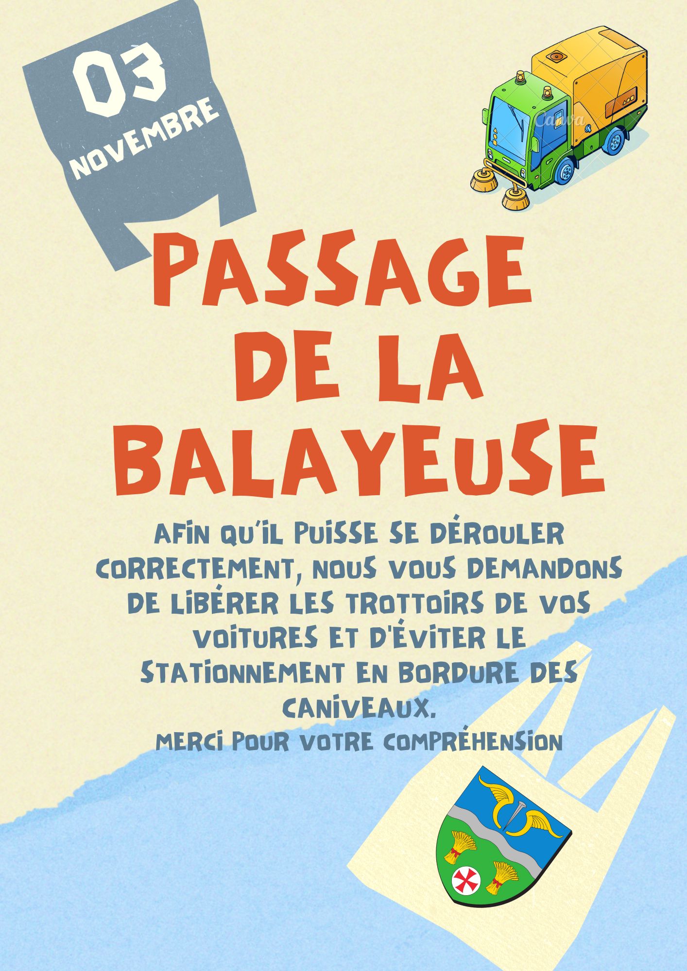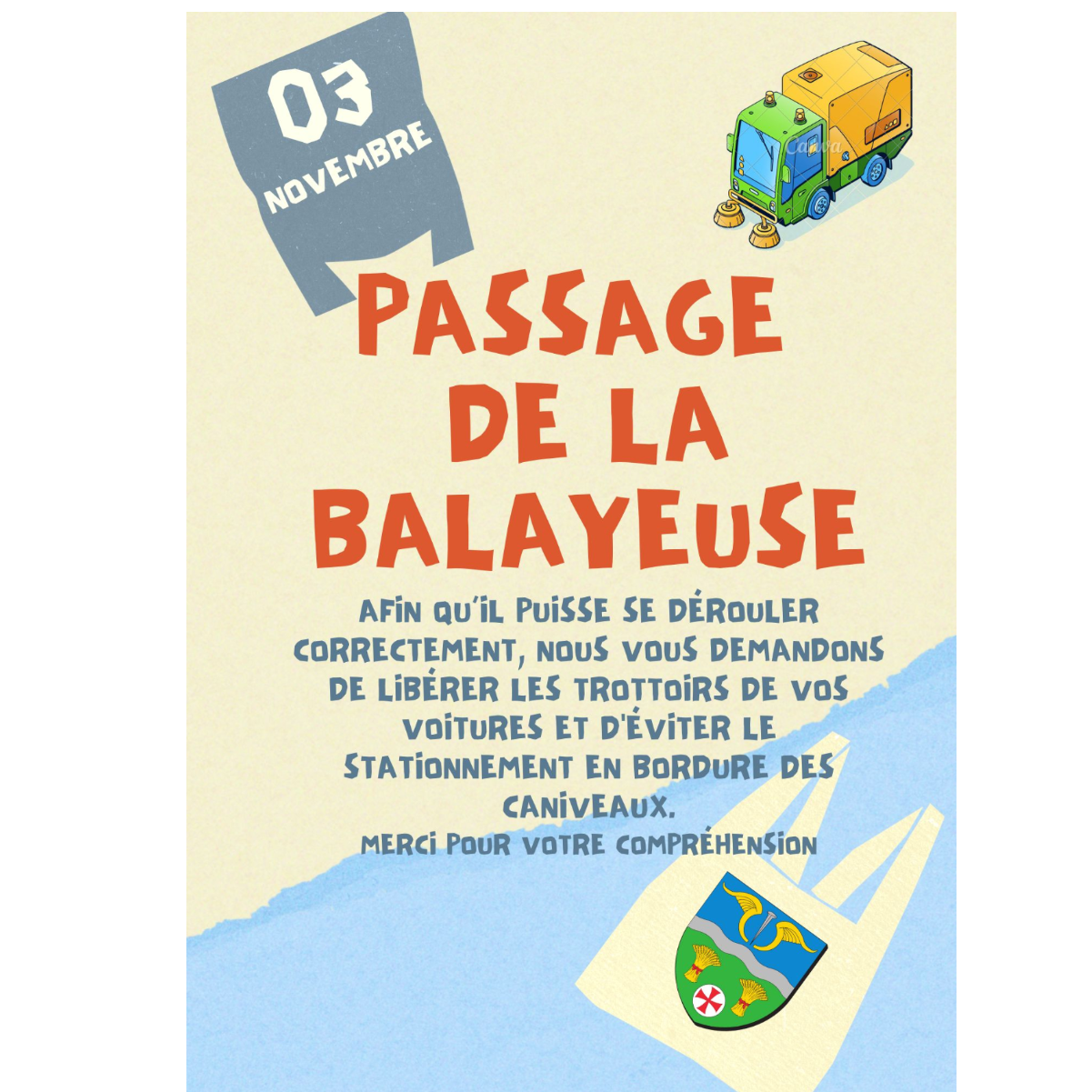 Le passage de la balayeuse est prévu le :