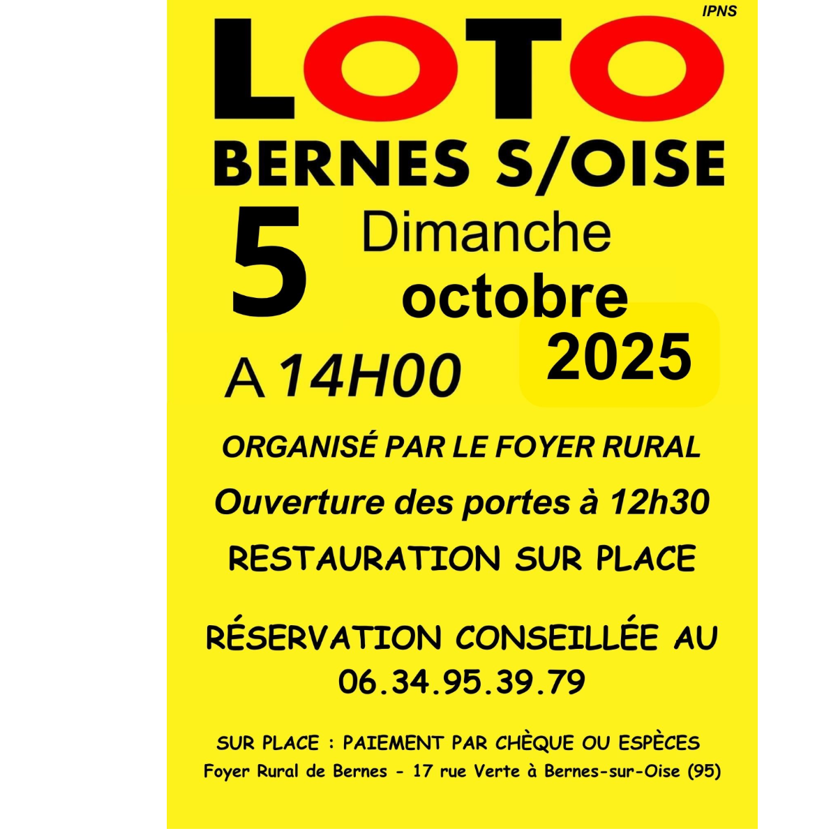 Rendez-vous le dimanche 5 octobre 2025 pour le premier LOTO de la saison 2025/2026.