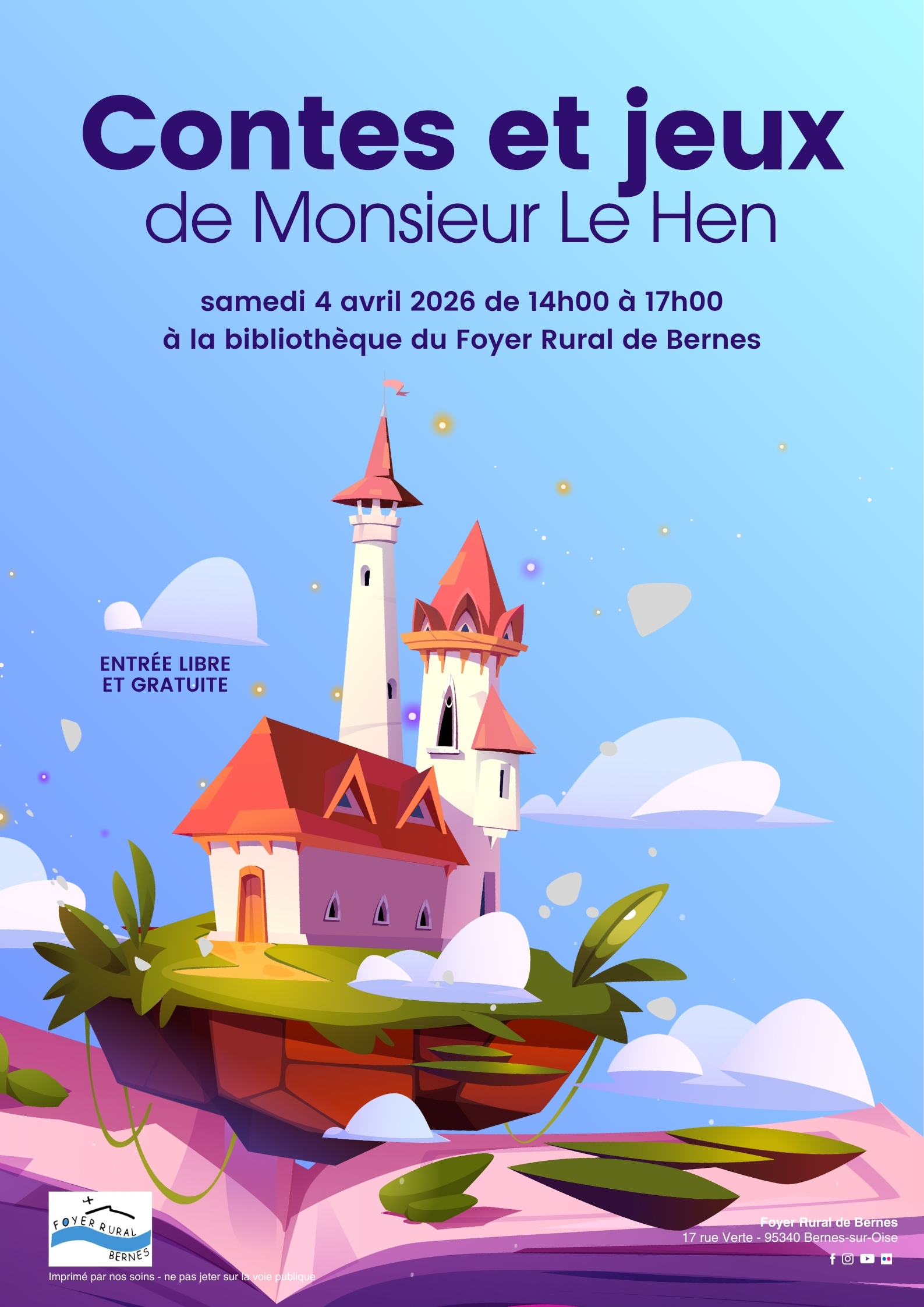 Prochain rendez-vous le samedi 04 avril à la bibliothèque du Foyer Rural de 14h00 à 17h00 !